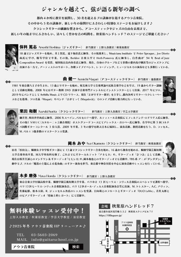 新しい年の始まりにふさわしい、清々しく豊かな音の時間を、秋葉原ハンドレッド7のステージでご堪能ください!