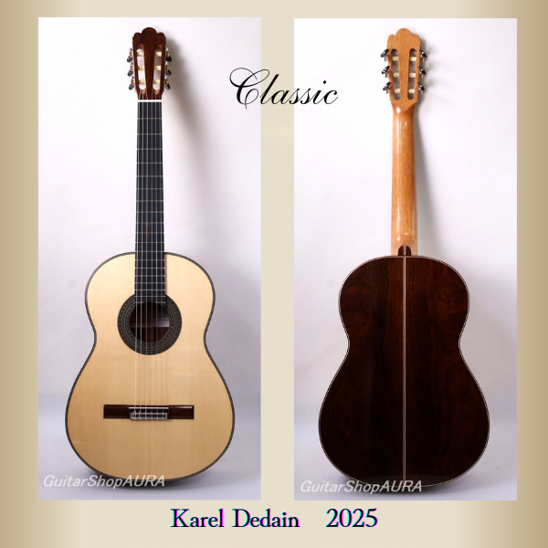 エンリケ・ガルシア(Enrique Garcia 1868~1922)という、マヌエル・ラミレスに学び(これついてはホセ・ラミレス1世という説もあります)、バルセロナの地でフランス的な製作文化とトーレスの伝統とを融合させ全く独自のギターを作り上げてバルセロナ派の中心人物となり、さらにはその影響を彼の死後もあのイグナシオ・フレタ1世や南米ギターの音響キャラクターの形成にまで寄与したであろう、このあまりにも謎に満ち、超時代的で、そして文字通り稀代の名工のギターをオマージュであれインスパイアドであれ製作することの困難は計り知れません。それはその個性的音響という感性に関わる部分と、生涯300本のギターを製作したと言われながらもその実作に接することの極めてまれなブランドであるという物理的な制約ゆえなのですが、謎と稀少性の両方においてさらに上をゆくビセンテ・アリアスのギターにさえ知悉し、同様にそのinspired model を見事に作り上げてしまったカレル氏ほどにいま世界で相応しい製作家もいないでしょう(イタリアのベテラン製作家、Andrea Tacchi 氏がやはり素晴らしいガルシアモデルを製作していることは特記しておく必要があります)。