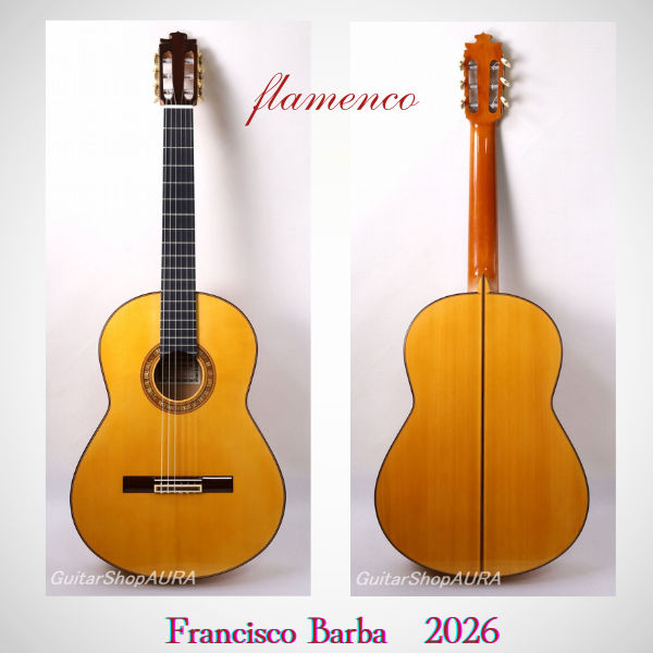 フランシスコ・バルバ フラメンコ ブランカ(白)モデル2026年 新作の入荷です。全体の精緻な仕上がりが素晴らしく、木工の造作、ネックの仕込みやフレット、ブリッジの設定、そして塗装、更には内部構造の仕上げに至るまでじつに丁寧な仕事が為されており、それぞれが全体の統一感に寄与している、完成度の極めて高い一本となっています。