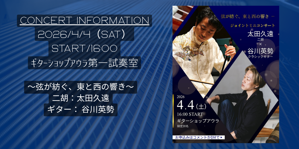二胡とクラシックギターによるジョイントミニコンサートを開催いたします。